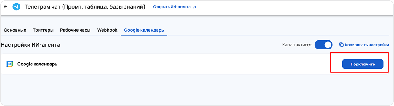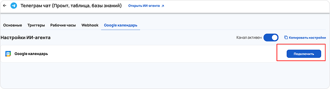 - В разделе каналы выберите куда вы хотите подключить календарь.